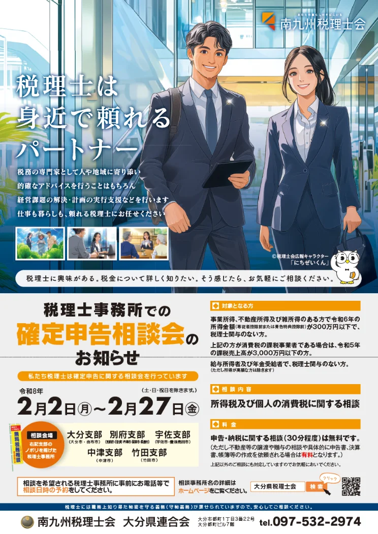 TEL 097-532-2974 - 令和年7年度 確定申告相談会 -税理士事務所での無料相談会-